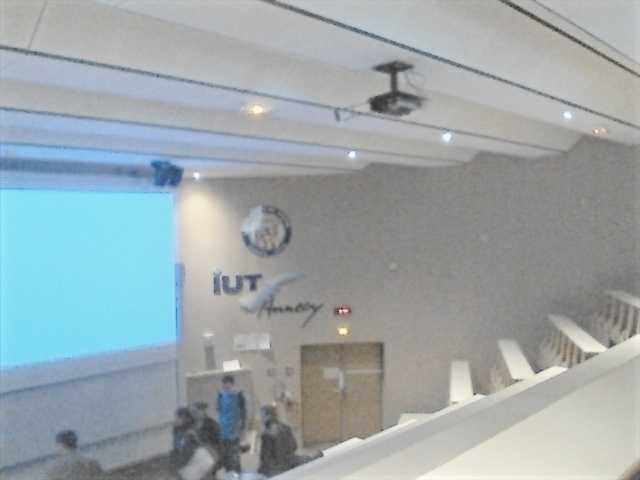 下方是视网膜模型大细胞输出的结果。其信号在瞬态事件发生的地方很强。在这里,一名学生在图像底部移动,因此产生了高能量。图像的其余部分是静态的,然而,它被强烈的噪声破坏。在这里,视网膜过滤掉了大部分噪声,从而产生了低的假运动区域“警报”。该通道可用作瞬态/移动区域检测器:它将为低成本的分割工具提供相关信息,该工具将突出显示事件发生的区域。