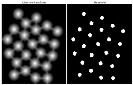 cv.threshold(dist_transform,0.7*dist_transform.max(),255,0)