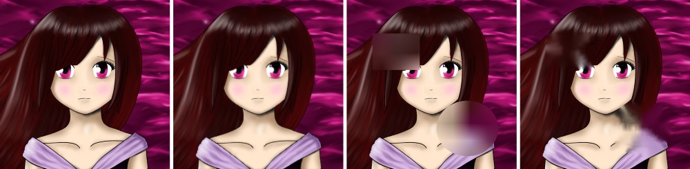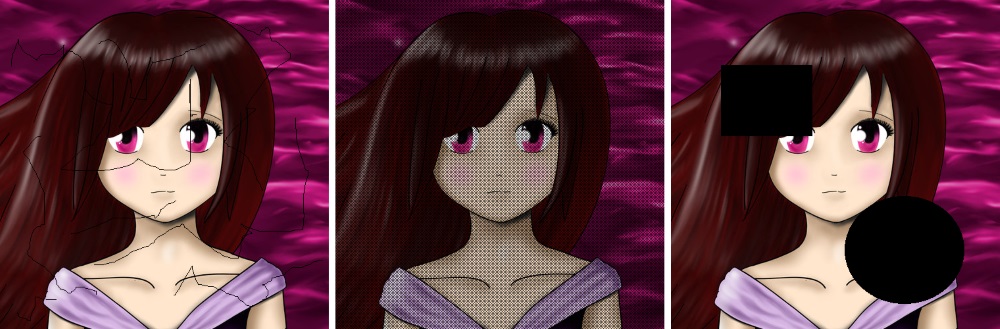 使用掩码,我们在相同的输入图像上应用了三种不同类型的损坏。这是结果。