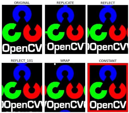 void copyMakeBorder(InputArray src, OutputArray dst, int top, int bottom, int left, int right, int borderType, const Scalar &value=Scalar())
