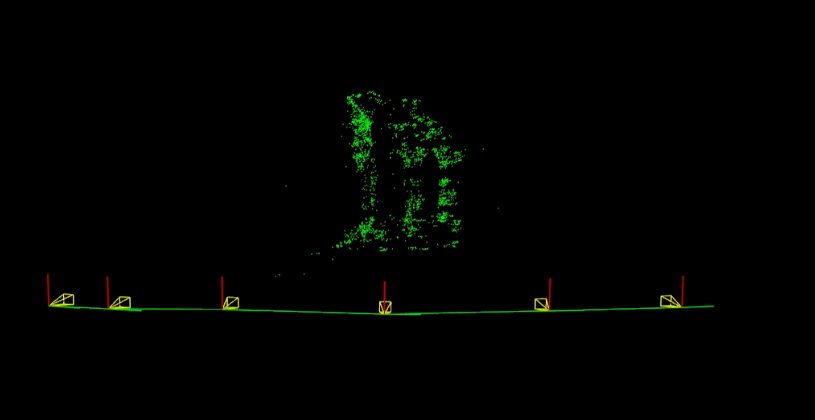 下图显示了获得的相机运动以及估计的稀疏 3d 重建