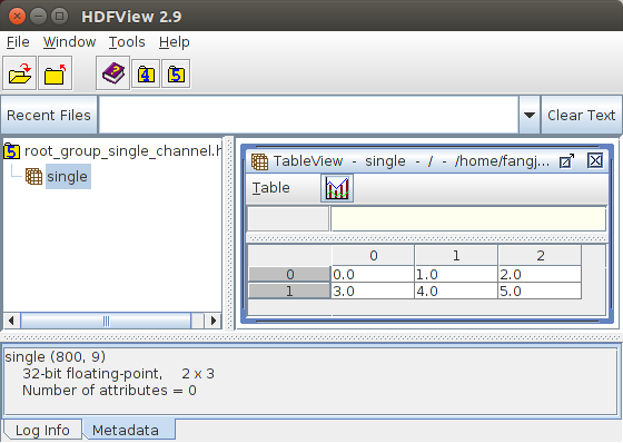 对于函数 write_root_group_single_channel(),由于数据集名称是 /single,它位于根组内,我们可以使用