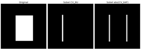 如果您想检测两个边缘,更好的选择是将输出数据类型保持为更高的形式,如 cv.CV_16S、cv.CV_64F 等,取其绝对值,然后转换回 cv.CV_8U。以下代码演示了水平 Sobel 滤波器的此过程和结果差异。
