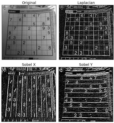 Sobel 算子是联合高斯平滑加微分运算,因此对噪声的抵抗力更强。您可以指定要采用的导数方向,垂直或水平(分别通过参数 yorder 和 xorder)。您还可以通过参数 ksize 指定内核的大小。如果 ksize = -1,则使用 3x3 Scharr 滤波器,它比 3x3 Sobel 滤波器效果更好。请参阅文档以了解使用的内核。