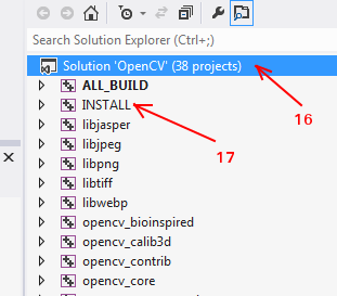 - 在解决方案资源管理器中,右键单击 Solution(或 ALL_BUILD)并构建它。完成需要一些时间。
