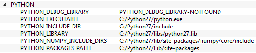 - 另请确保在 PYTHON 字段中,所有内容都已填写。(忽略 PYTHON_DEBUG_LIBRARY)。参见下图: