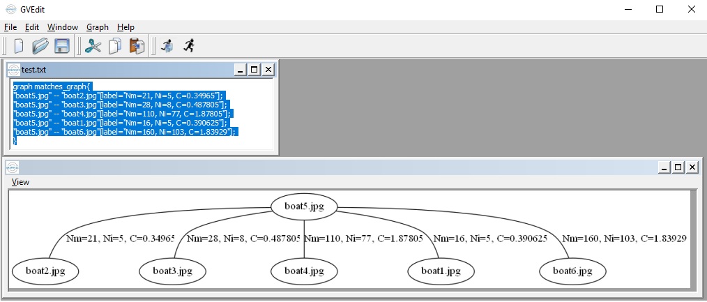 将DOT语言表示的匹配图保存到 test.txt (–save_graph test.txt):标签说明:Nm 为匹配数,Ni 为内点数,C 为置信度