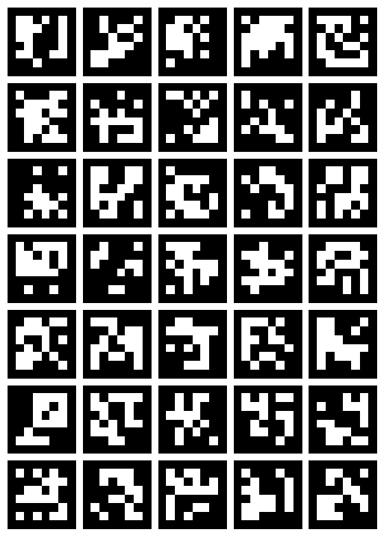 因此,这个板将由 5x7=35 个标记组成。每个标记的 ID 默认按升序分配,从 0 开始,所以它们将是 0, 1, 2, ..., 34。