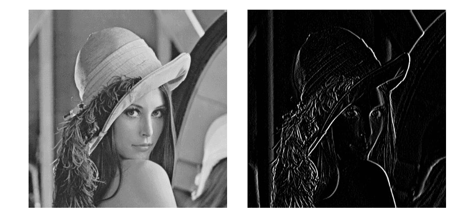 在本教程中,我们使用了水平梯度滤波器(如上动画所示),它会生成一个突出垂直边缘的图像。
