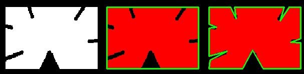 要理解这一点,假设您正在尝试在图像中找到一个正方形,但由于图像中的某些问题,您没有得到一个完美的正方形,而是一个“糟糕的形状”(如下面第一张图像所示)。现在您可以使用此函数来近似该形状。在此,第二个参数称为 epsilon,它是从轮廓到近似轮廓的最大距离。它是一个精度参数。需要明智地选择 epsilon 才能获得正确的输出。