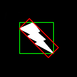 两个矩形都显示在单个图像中。绿色矩形显示了正常的边界矩形。红色矩形是旋转矩形。
