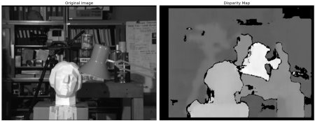 下图包含原始图像(左)及其视差图(右)。正如你所看到的,结果被高度噪声污染。通过调整 numDisparities 和 blockSize 的值,你可以获得更好的结果。